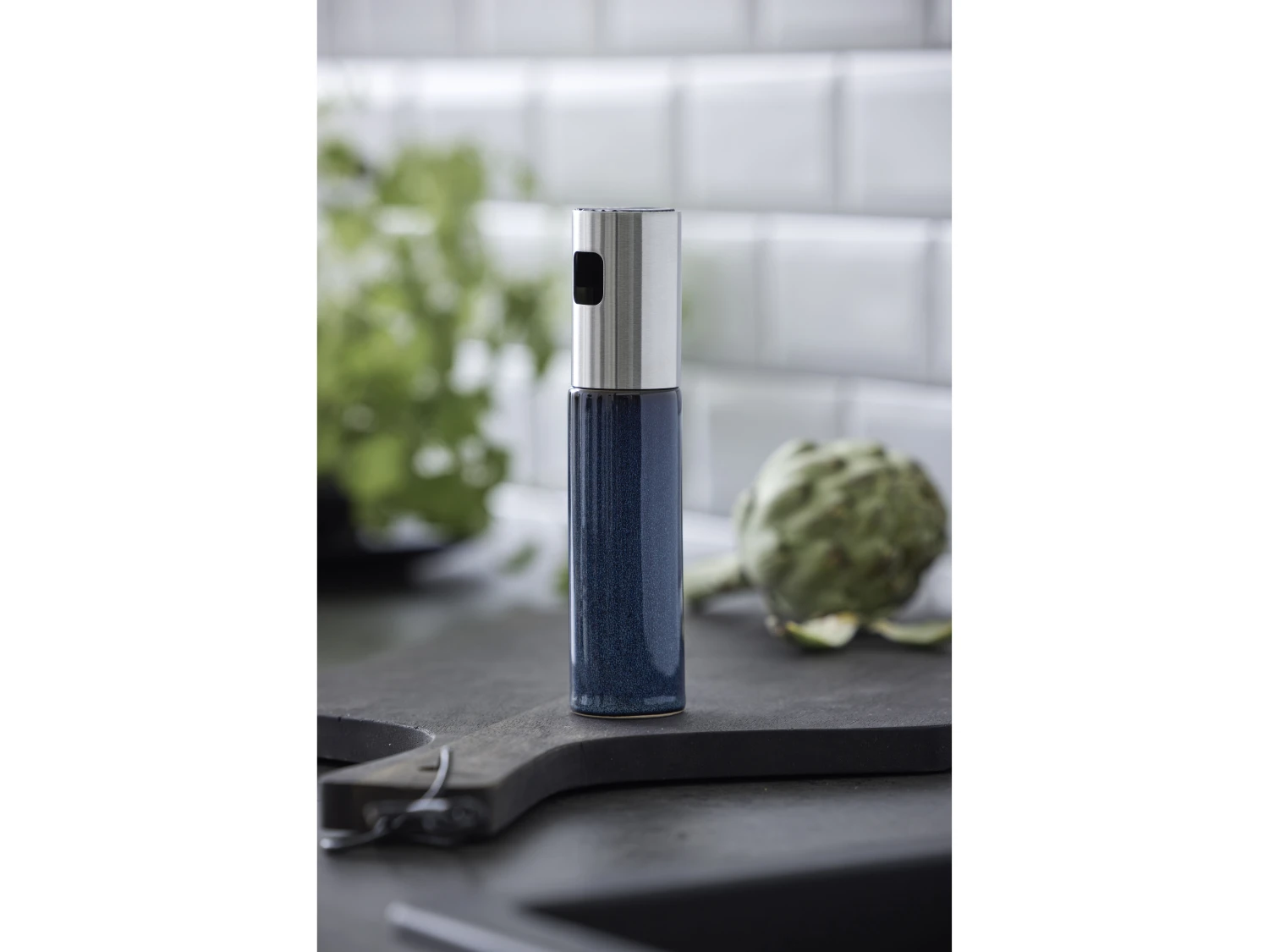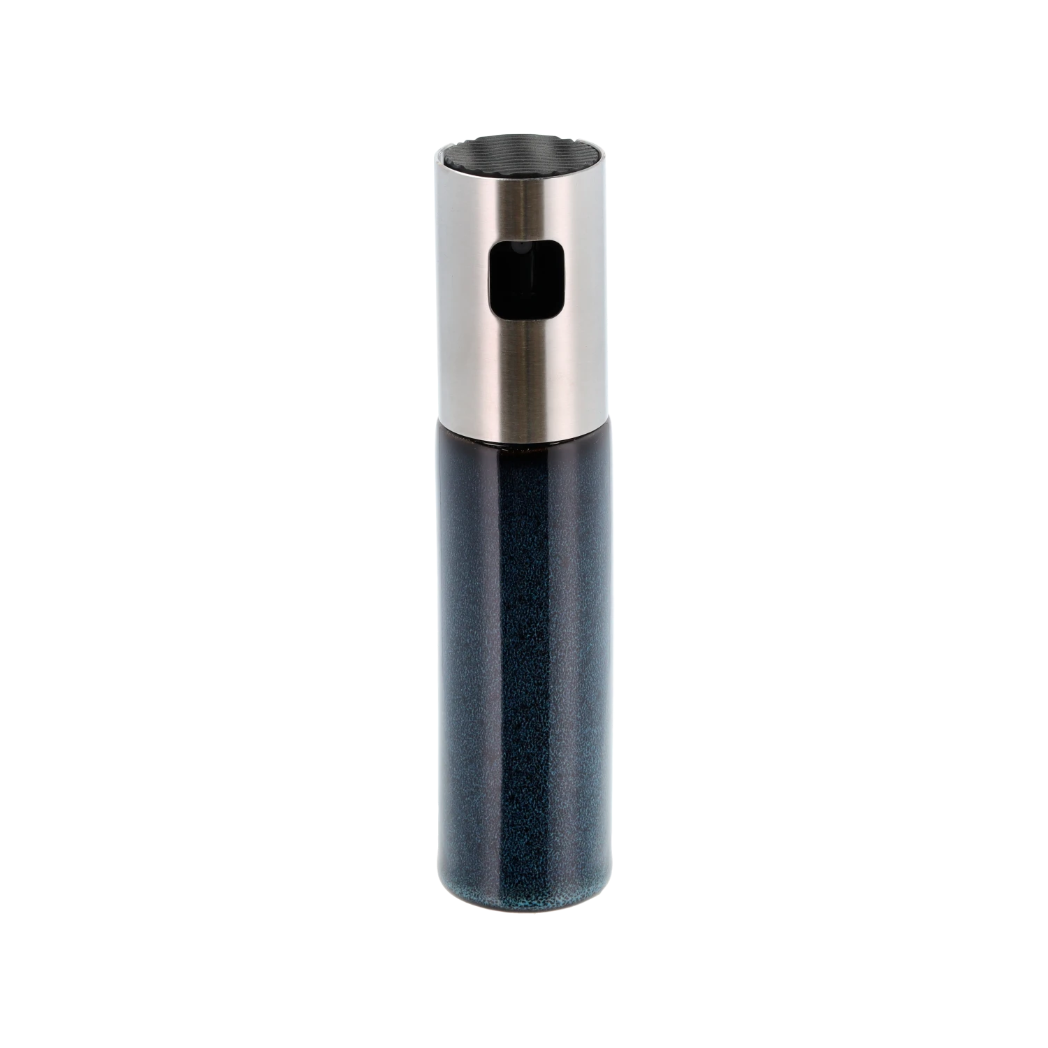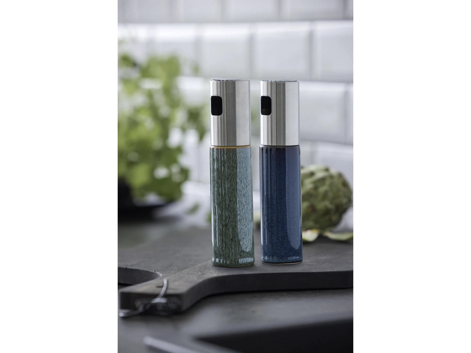 Mit der dekorativen Sprühflasche aus Steinzeug mit Oberteil aus Edelstahl können Sie genau die Menge an Öl dosieren, die entweder beim Kochen oder kurz vor dem Servieren bei Salaten, Gemüse, Fisch und anderen Gerichten benötigt wird. Praktisches Küchenzubehör, das immer griffbereit ist. 10 cl. Durchmesser 4 x 18 cm.