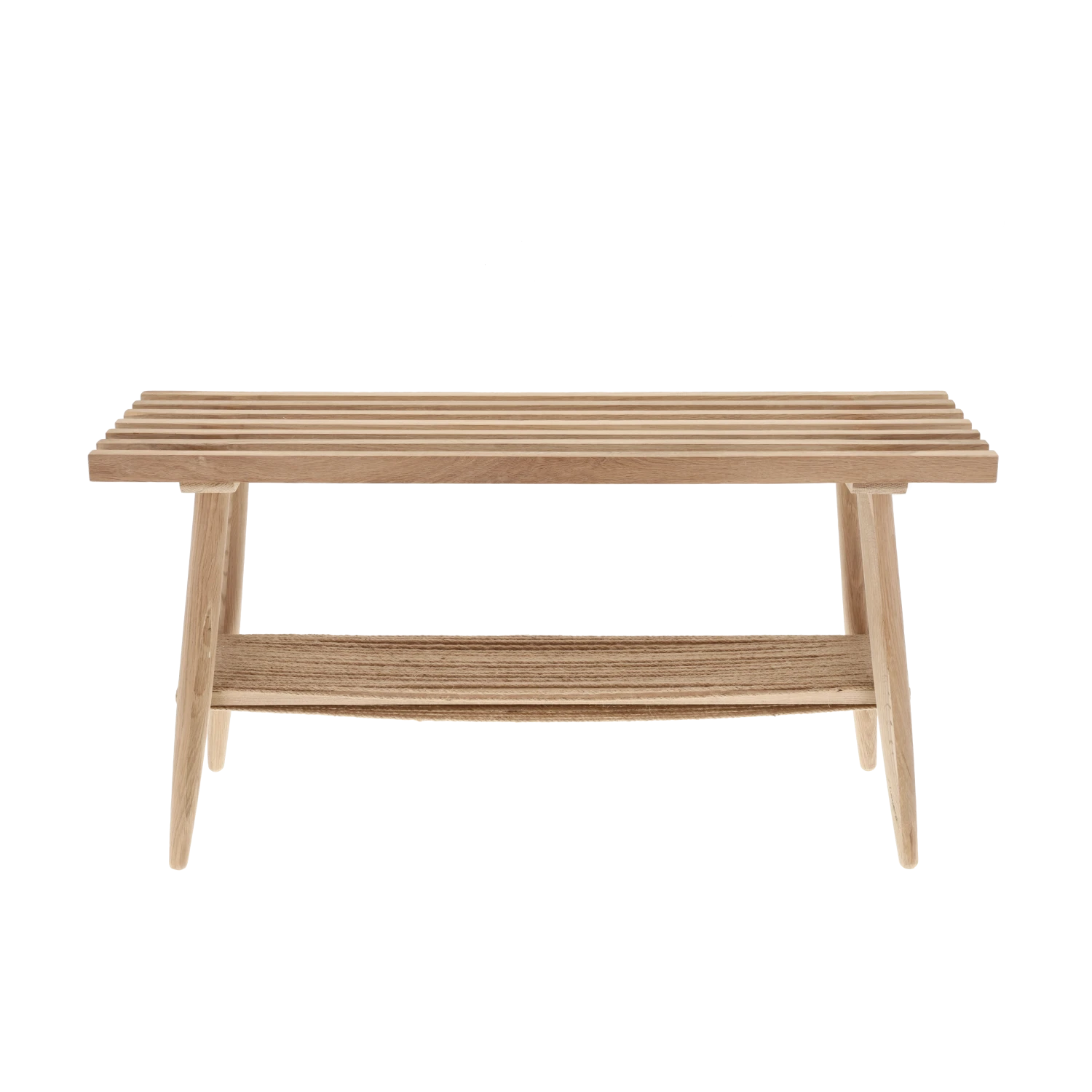 Eichenbank in einem modernen und minimalistischen Design, das in die meisten Wohnungen passt. Die Bank bietet viele Verwendungsmöglichkeiten und kann zum Beispiel als Sitzplatz im Flur oder als hübsches Möbelstück im Schlafzimmer verwendet werden. Unter dem Sitz befindet sich ein kleines praktisches Fach für die Aufbewahrung von Kleinigkeiten. Max. Gewicht 100 kg.