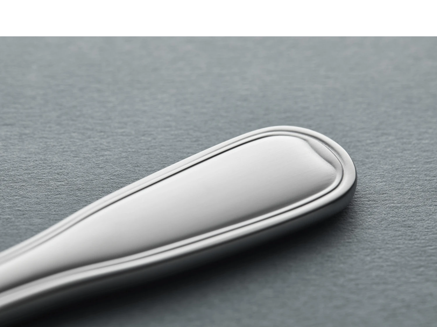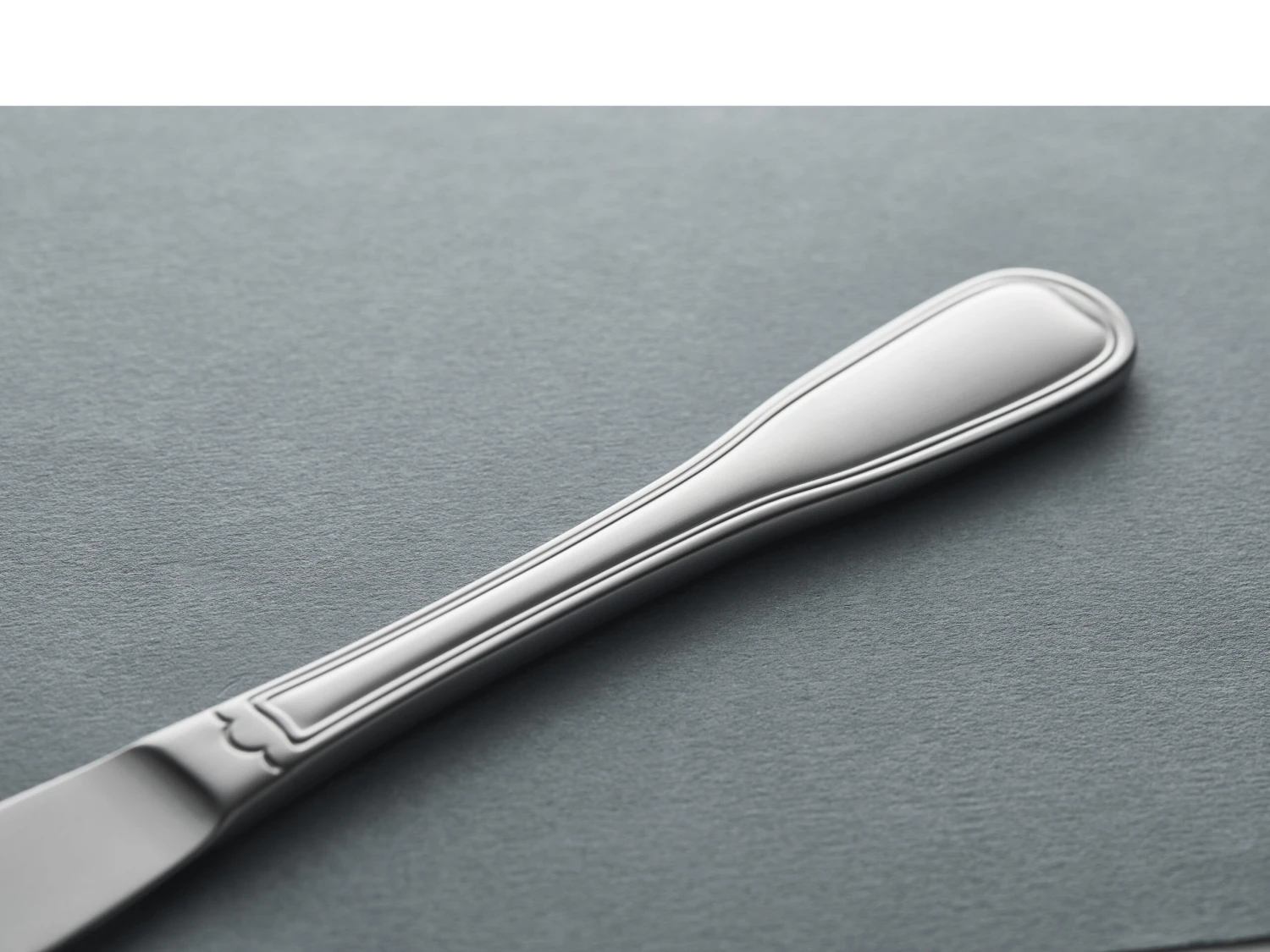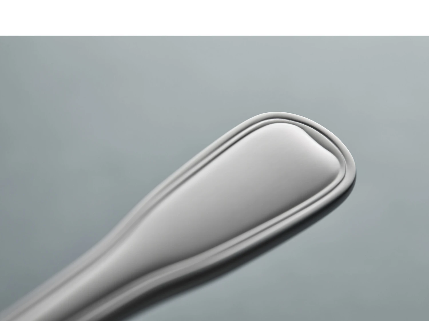 Attaché steht für ein klares, vom Barock inspiriertes Design. Das Besteck ist im traditionellen Stil mit einer doppelt gerillten Kante und aus matt poliertem Edelstahl gefertigt. Spülmaschinenfest.