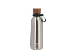 Die wunderhübsche Trinkflasche aus Edelstahl mit Satin-Finish hat einen Deckel in Holzoptik und einen Karabiner, sodass die Flasche auch außen am Rucksack befestigt werden kann, ohne Platz im Inneren oder in den Seitentaschen einzunehmen. Die Flasche fasst 700 ml und kann in der Spülmaschine gewaschen werden.