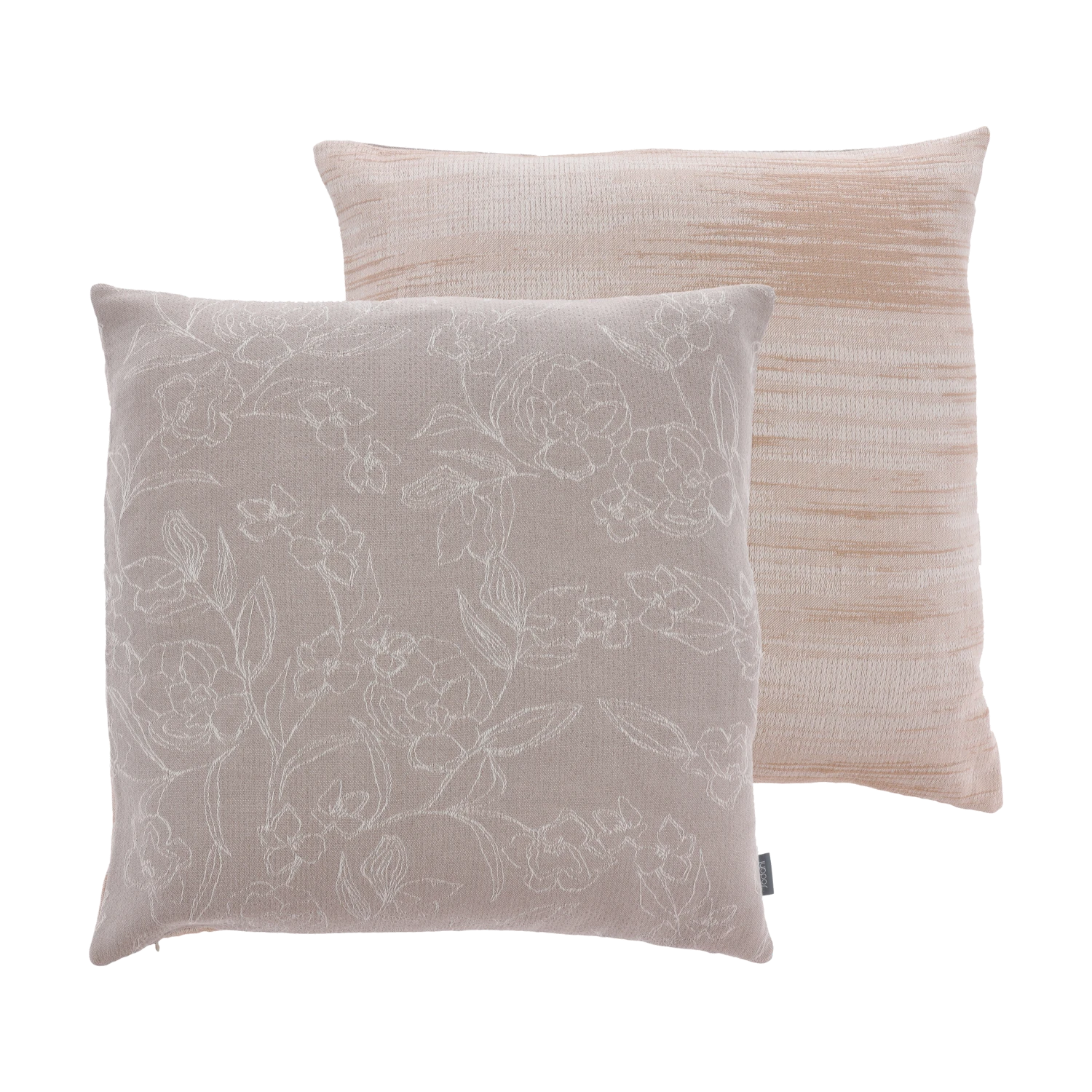 Die schlichten Blüten, mit nur einem Strich gezeichnet, bilden ein feines, fließendes und feminines Muster. Der handgezeichnete Stil und die ultrafeinen Linien auf dem monochromen Hintergrund sind beruhigend für das Auge. Sowohl das Kissen als auch das Plaid sind mit Doubleface-Effekt gearbeitet und die Rückseite zeigt ein hübsch graduiertes Melange-Motiv.
