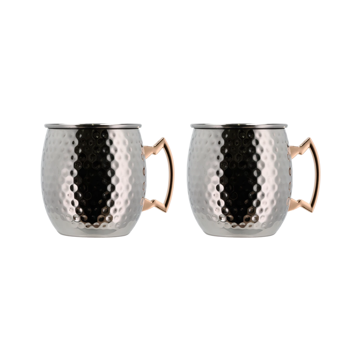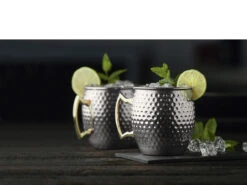 Der hübsche Krug mit Henkel und gehämmerter Außenseite ist der klassische und charakteristische Krug für den beliebten Cocktail Moscow Mule, der ein modernes Comeback feiert. Moscow Mule wird ganz einfach aus Ginger Beer, Wodka, Limettensaft und vielen Eiswürfeln gemixt, damit sich das Getränk eiskalt hält. Der Krug ist sehr leicht und fasst 0,5 Liter.