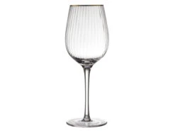 Hübsches Weinglas mit weichen, abgerundeten Formen. Das elegante, geriffelte Design mit hübscher Goldkante verleiht dem Glas einen tollen Vintage-Look, der gleichzeitig die Trends der Zeit widerspiegelt. Servieren Sie Ihren besten Wein in den Gläsern und die hübschen Facetten reflektieren das Licht und den Inhalt der Gläser auf wunderschöne Art und Weise.