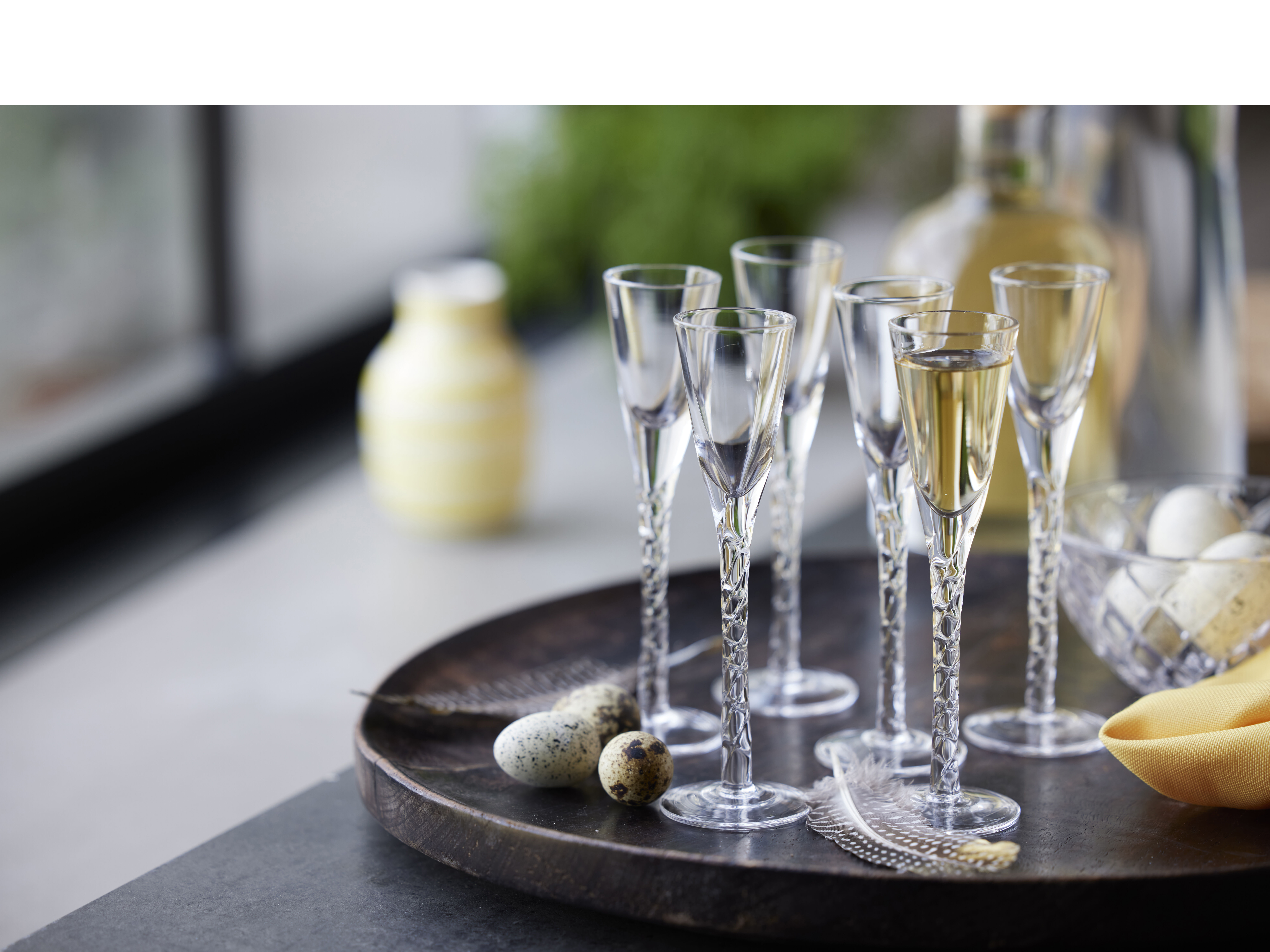 Die 6 handgefertigten und mundgeblasenen Schnapsgläser mit handgedrehtem Stiel tragen zu einer guten Atmosphäre am Tisch bei. Die Schnapsgläser aus klarem Glas haben eine hübsche, klassische Form und können 2,5 cl enthalten. H 16 cm.