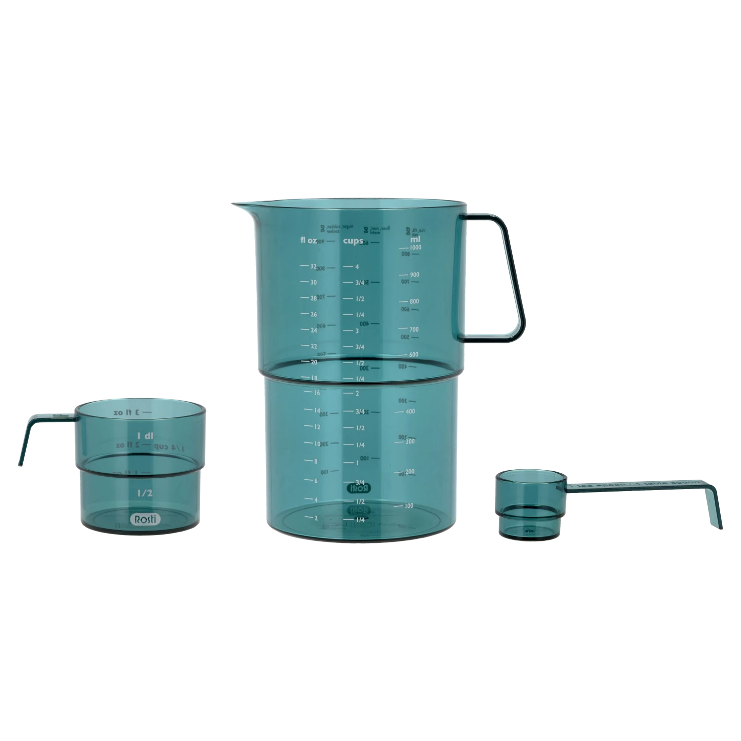 Mensura bedeutet „messen“ auf Latein, und der Zweck der Mensura-Serie ist genau das – schnell und genau zu messen. Das Mess-Set besteht aus einem 1,0 Liter Messbecher, einem Dezilitermaß und einem Messlöffel aus SAN, einem sehr transparenten Material mit einer hohen Qualität und guter Haltbarkeit.