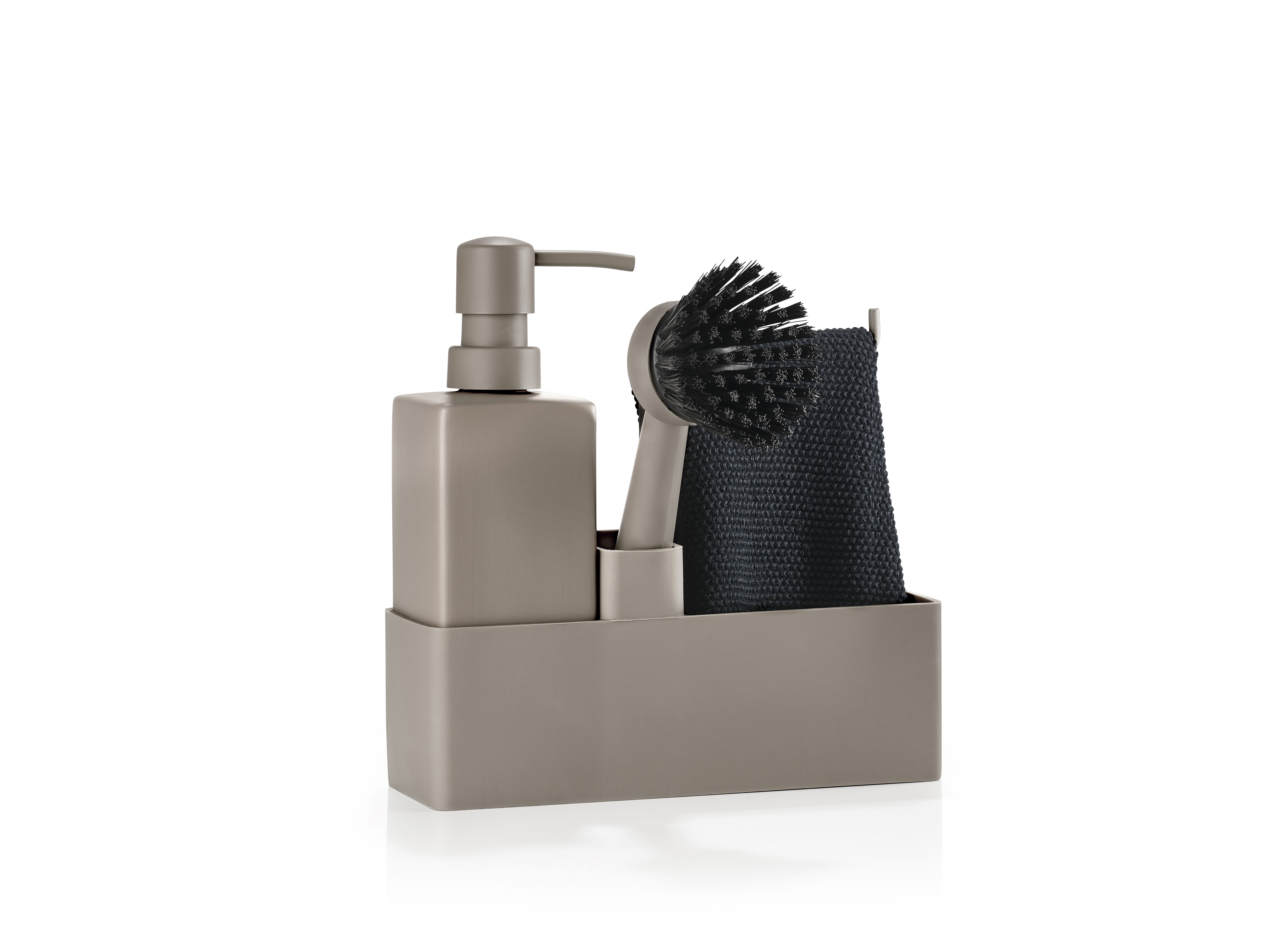 Das beliebte All-in-One-Geschirrtuch mit Geschirrtuch von Zone Denmark. Der Seifenspender besteht aus massiver Keramik und der Aufbewahrungsteil besteht aus kratzfreiem und leicht zu reinigendem Silikon. Die Bürste kann alleine stehen und der Bürstenkopf kann ausgetauscht werden, sodass Sie immer eine frische Bürste haben.