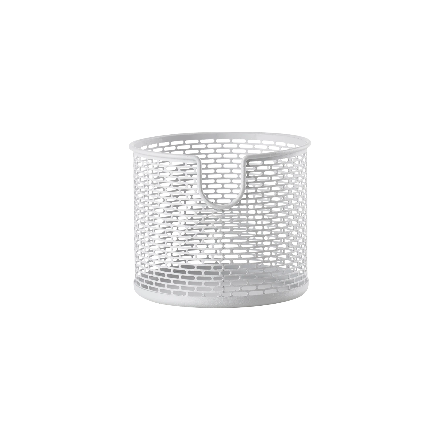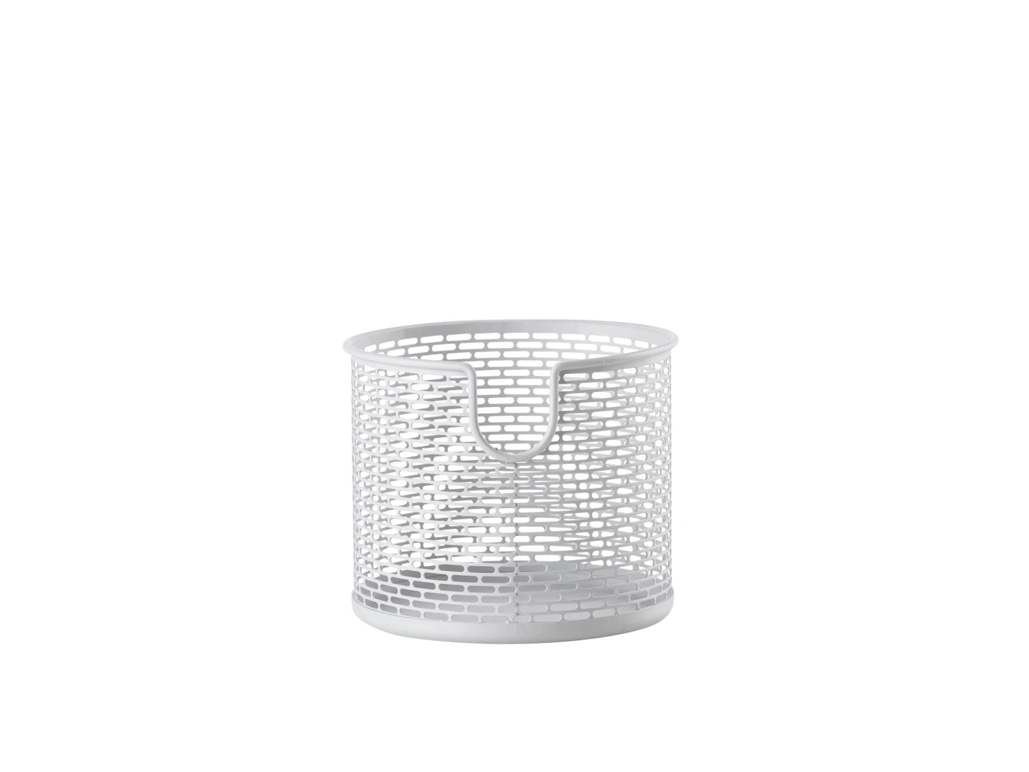 Köstlicher Metallkorb für den tisch oder das Regal, regeln Sie Ihrer Make-up, Wattstäbschen, Cremes oder Haarschmuck. Das Kurvendesign verbindet das maskuline Metall mit femininen Bögen und Schnitzereien, die es mit und ohne Inhalt dekorativ machen. Durchm. 12 cm, Höhe 10 cm.