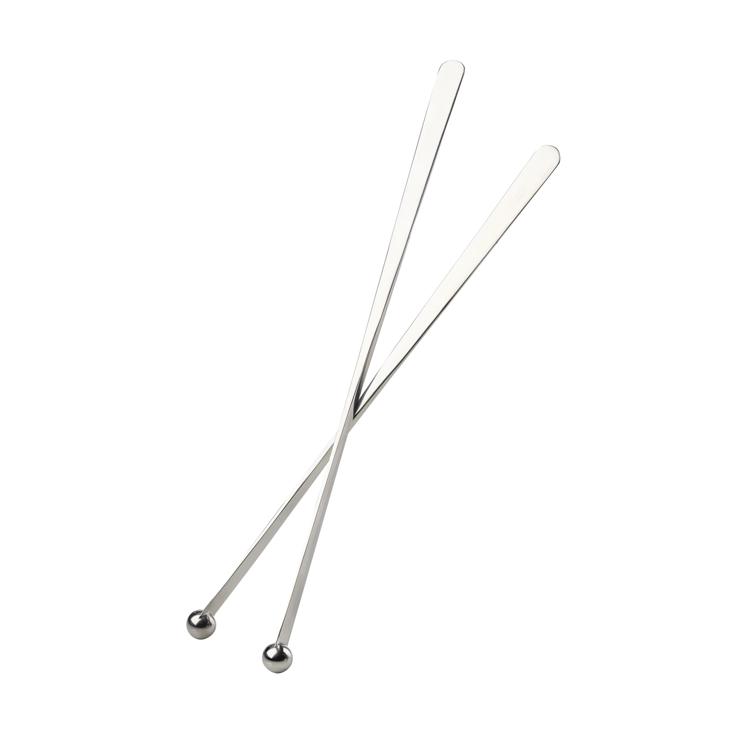Zwei elegante glänzende Stahllöffel von 25 bzw. 28 cm. Die Barserie Rocks wertet die traditioneller Hausbar mit köstlichen Geräten in neuen Bio-Formen auf. Design: Anne Qvist.