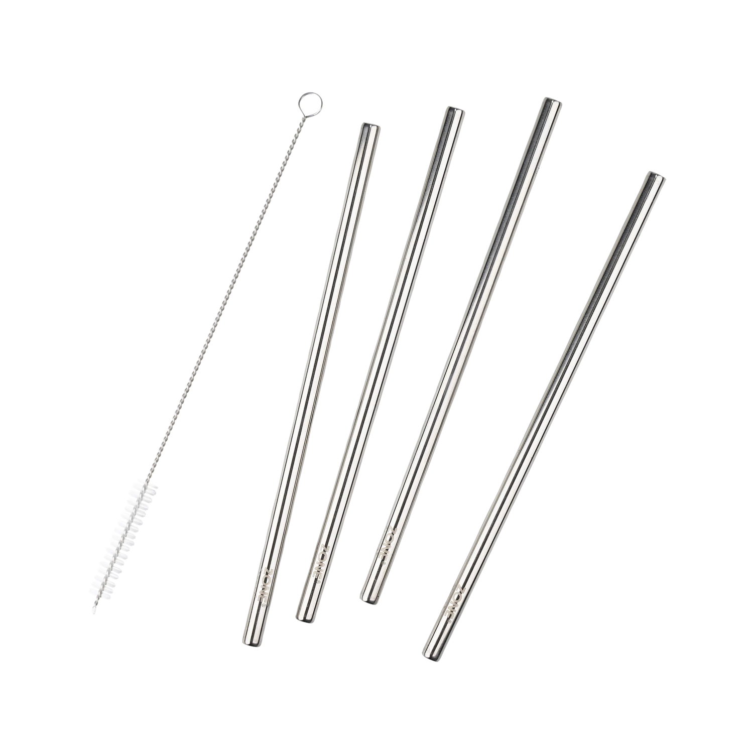 4 stilvolle Strohhalme aus Edelstahl 18/8. Mit einem Durchmesser von 8 mm eignen sich die Strohhalme für Smoothies, Getränke, Milchshakes und mehr. Die Stahlstrohhalme können immer wieder verwendet werden, wodurch die Umwelt für Kunststoffabfälle geschont wird. Eine Reinigungsbürste ist ebenfalls enthalten. Länge 21,5 cm.